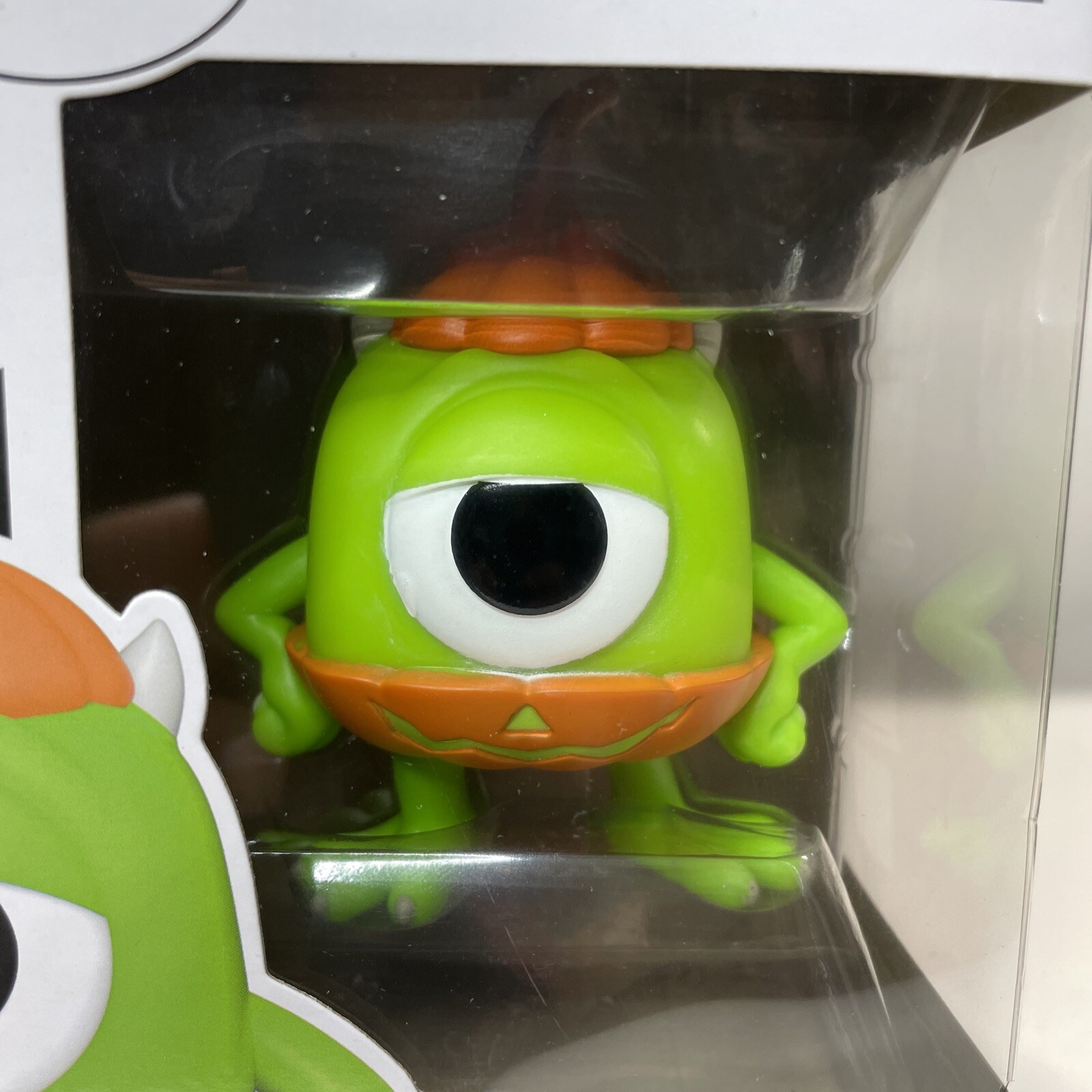 Celebrate Halloween with this Funko Pop Disney Pixar figure featuring Mike Wazowski from Monsters, Inc. Dressed in a festive pumpkin costume, this vinyl figure is part of the exclusive event/retailer collection. With intricate details and vibrant colors, this collectible is a must-have for any Funko fan or Pixar enthusiast. Display it proudly in its original packaging to add a touch of Halloween charm to your collection.