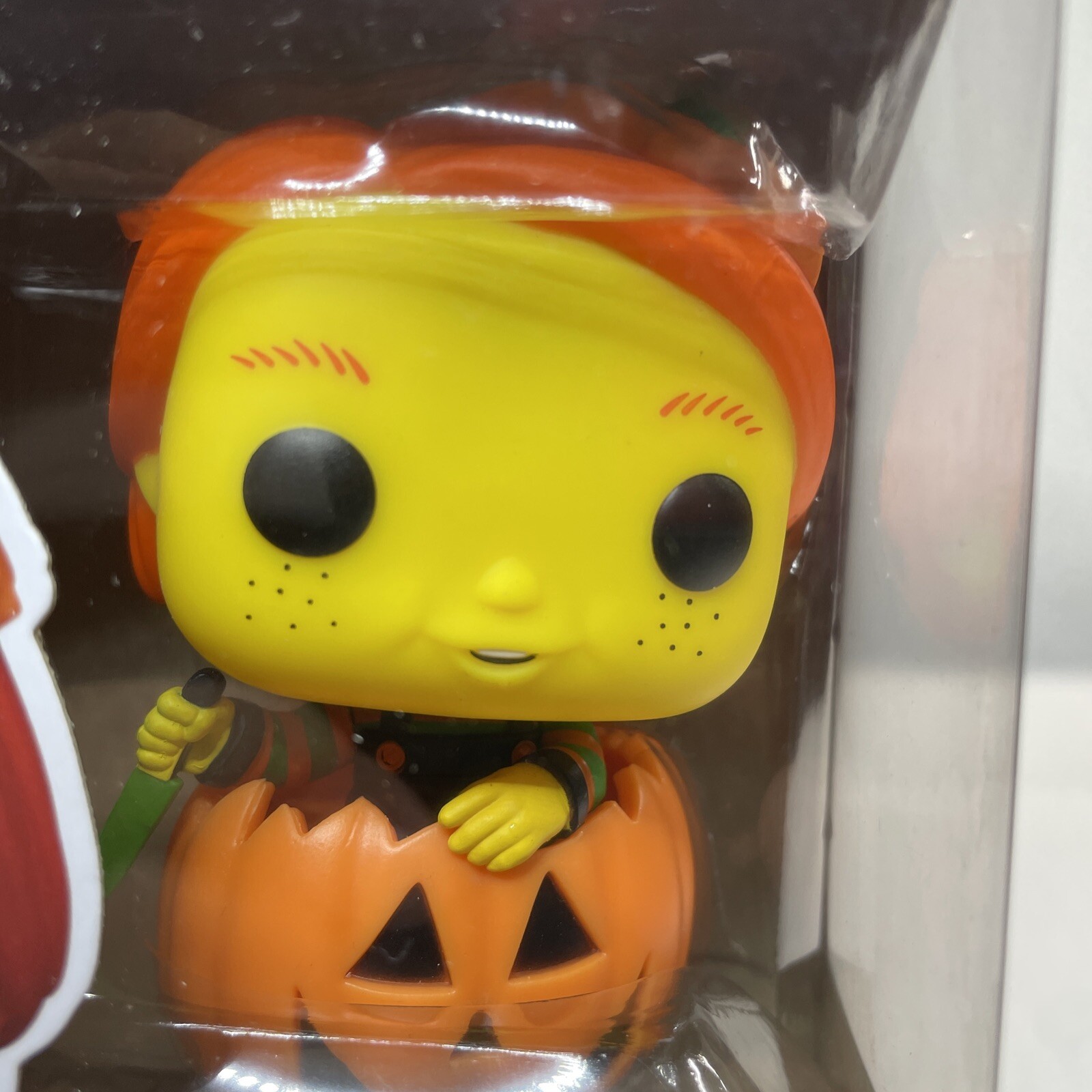 Get ready for a spooktacular addition to your collection with the Funko Pop! Good Guy Chucky in Pumpkin Vinyl Figure. This Pop Horror figure features the iconic character Chucky from the horror movie series in a Halloween-themed pumpkin outfit. Made of durable vinyl, this Pop! figure is perfect for horror enthusiasts and collectors alike. Add a touch of horror to your display with this must-have Funko collectible.