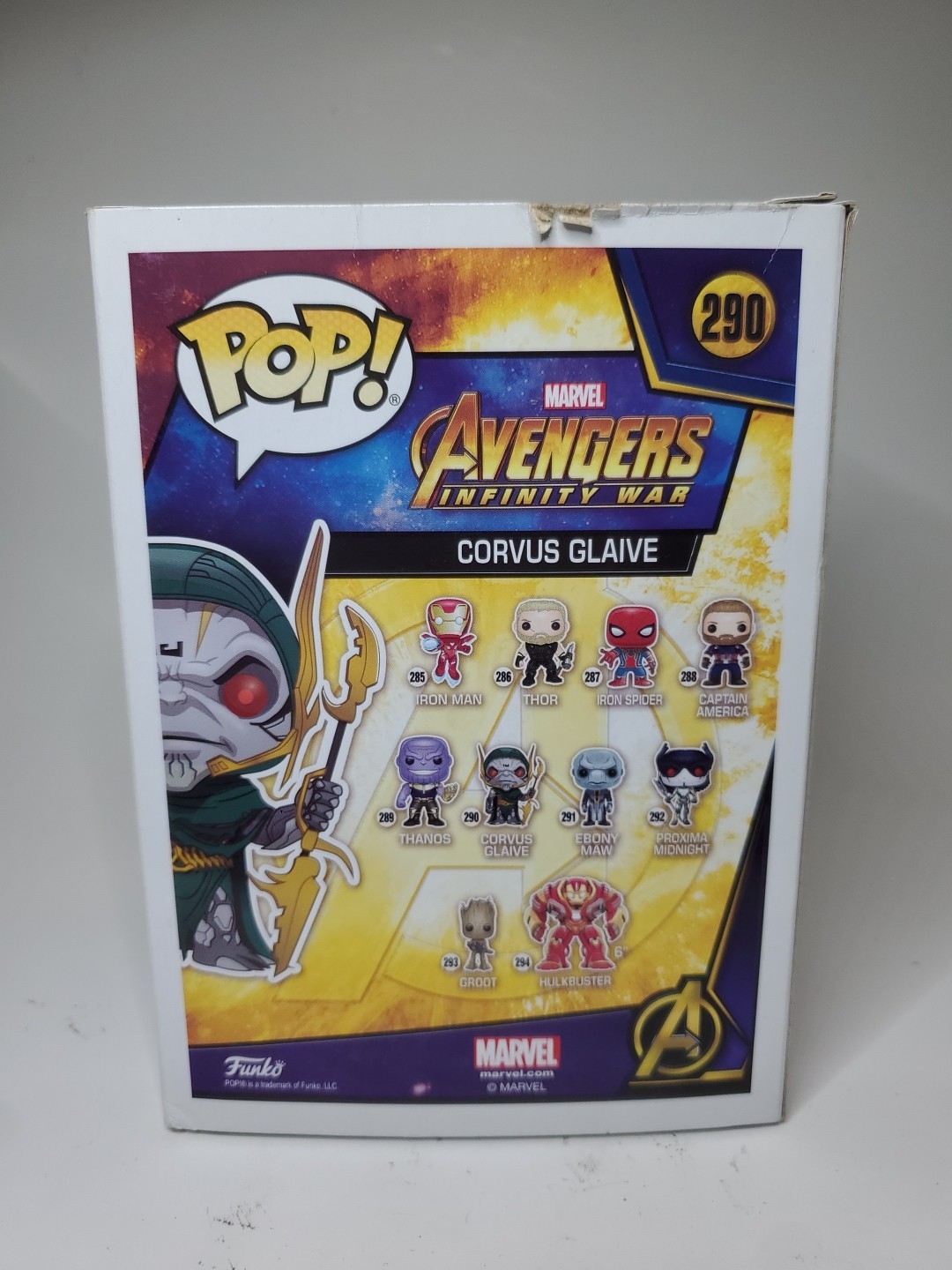Capture the essence of the Avengers: Infinity War saga with the Funko Pop! Corvus Glaive #290 vinyl figure. Perfect for Marvel enthusiasts and collectors, this standard-sized, multicolor figure brings the formidable antihero to life, right down to the finest detail. Made from durable vinyl and meticulously crafted, it’s a standout piece representing the might and mystery of the Marvel universe.