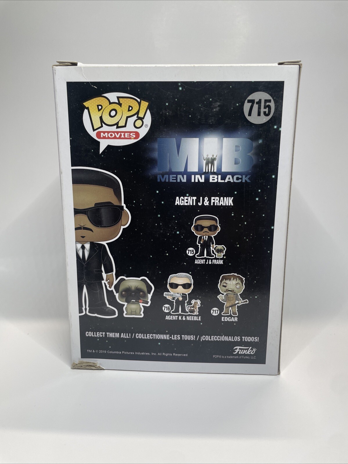 Funko Pop! Movies MIB Men In Black – Agent J & Frank #715 Vinyl Figures are a must-have for any Men in Black fan. Featuring Agent J in his classic black suit and Frank the pug, these standard-sized vinyl figures are perfect for display or collecting. Made by Funko in 2019, these figures are part of the Pop product line and come in their original unopened packaging. Add these fun and detailed collectibles to your collection today and bring a piece of the Men in Black franchise into your home.