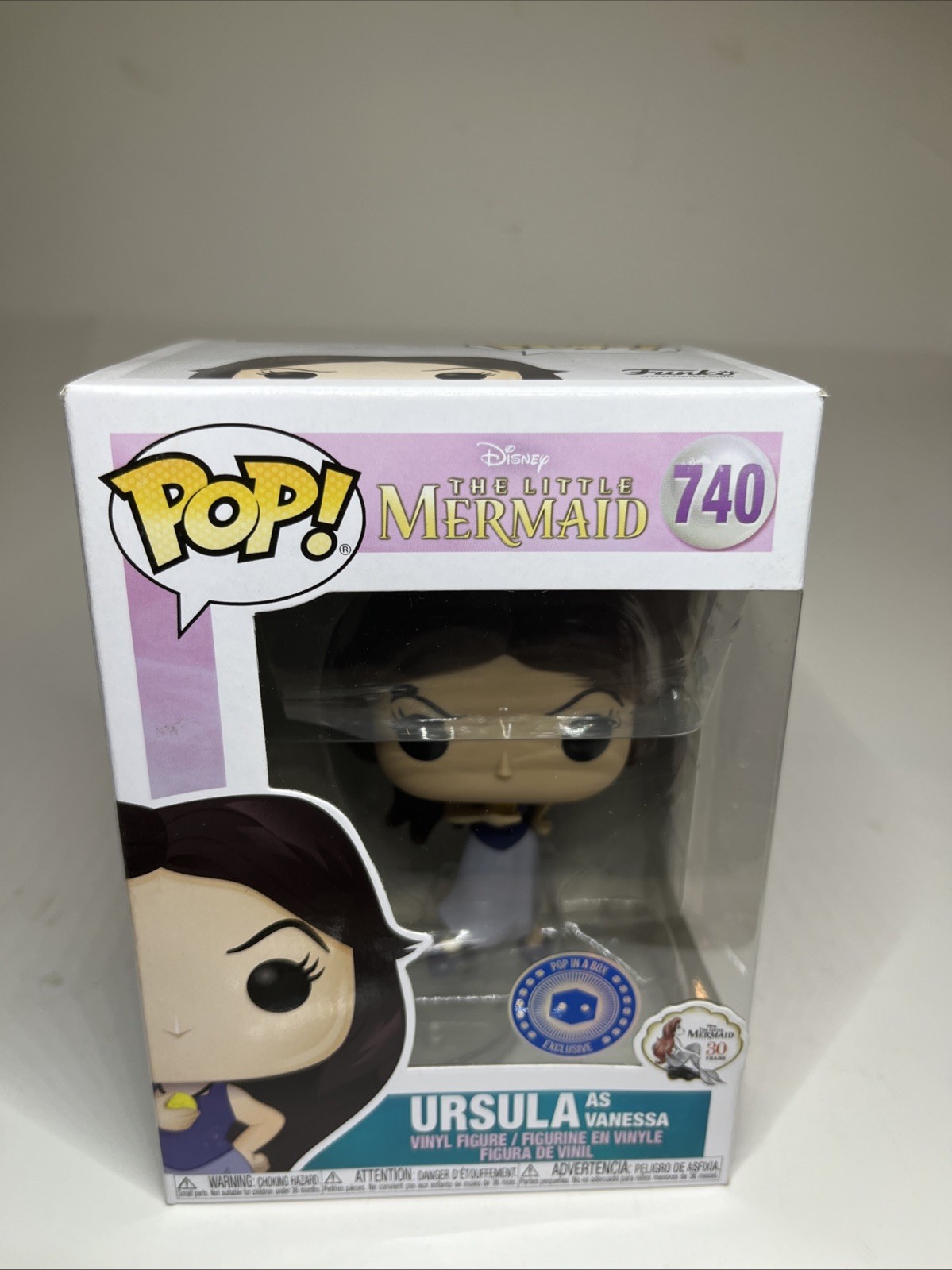 This particular figure, model number 740, is a Pop in a Box exclusive, making it a rare addition to any collection. Crafted from durable vinyl and standing as a standard-sized collectible, it's designed for fans aged 3 and up. Celebrate your love for the iconic 'The Little Mermaid' film and the magic of Disney with this captivating Funko Pop! piece.